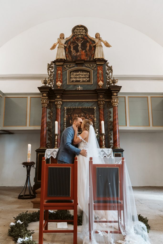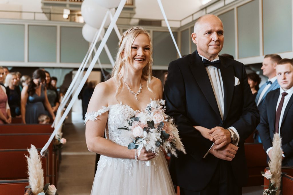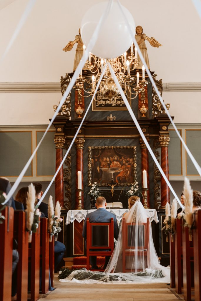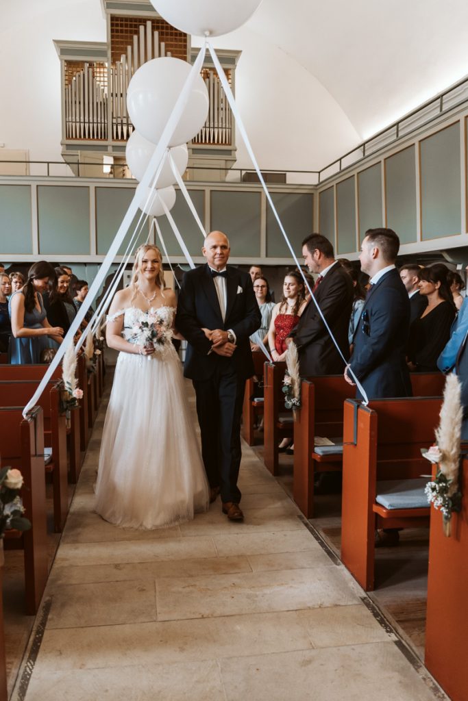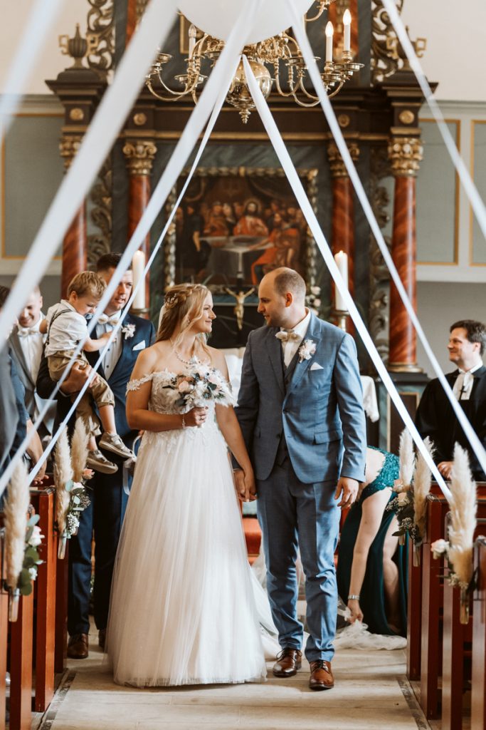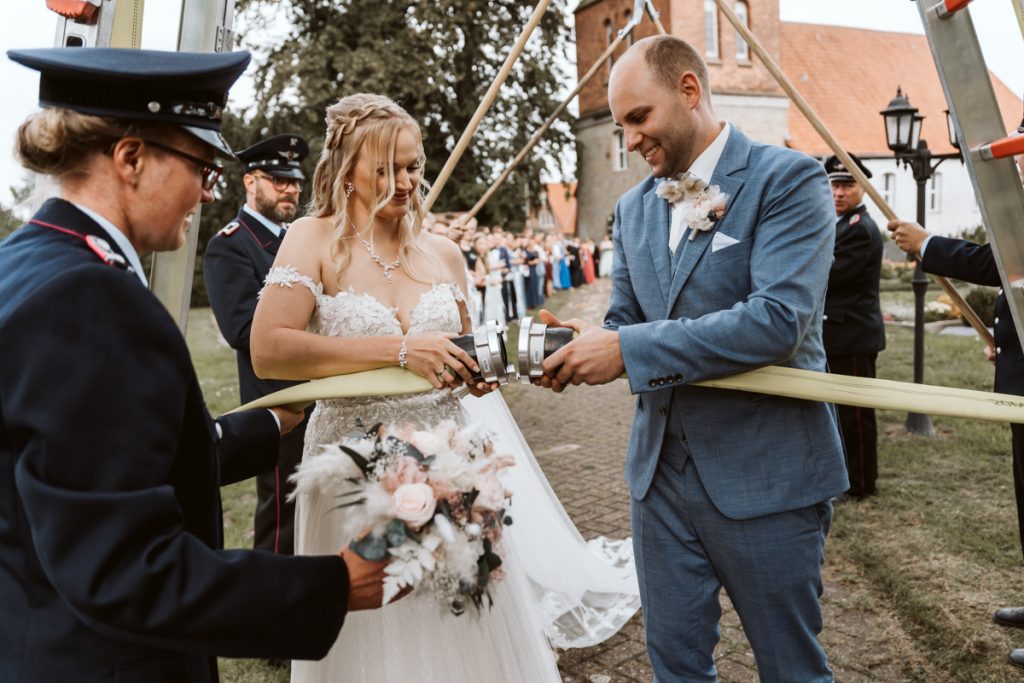 Ganz nach meinem Geschmack durfte ich die liebe Marieke bereits beim Getting ready begleiten. Die wunderschönen Momente mit Freudentränen ihren besten Freundinnen, die sie dort zum ersten Mal in ihrem Brautkleid sahen, sowie den First look mit dem Papa zu begleiten, war für mich der perfekte Einstieg in diesen zauberhaften Hochzeitstag mit emotionaler kirchlicher Trauung, Feuerwehrempfang und anschließender Kutschfahrt zur Location, wo eine ausgelassene Feier mit Livemusik und DJ im Gasthaus Beermann in Dudensen den Tag perfekt machte.